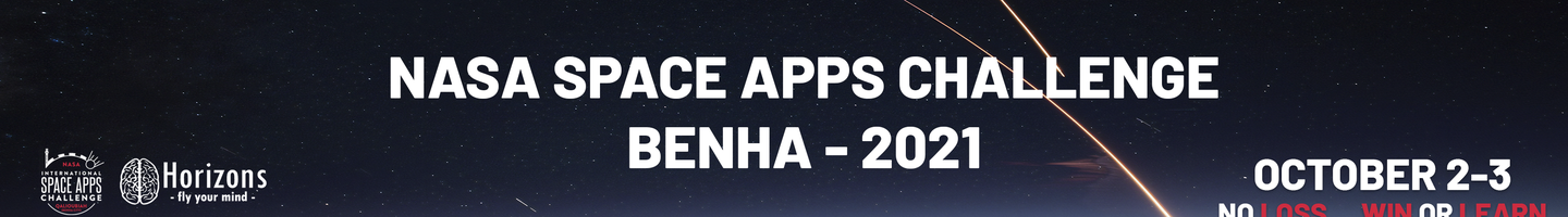 NASA SPACE APPS will take place on 2-3 October 2021 as a virtual event, and will be held for the first time ever in Qalioubiah state and hosted by "Horizons team".