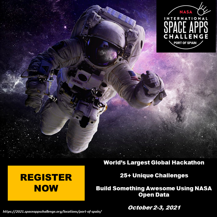 We are happy to bring the NASA International Space Apps Challenge to Port of Spain, Trinidad and Tobago for the first time! Given the unique circumstances of our time, the event will be held virtually on October 2-3, 2021.